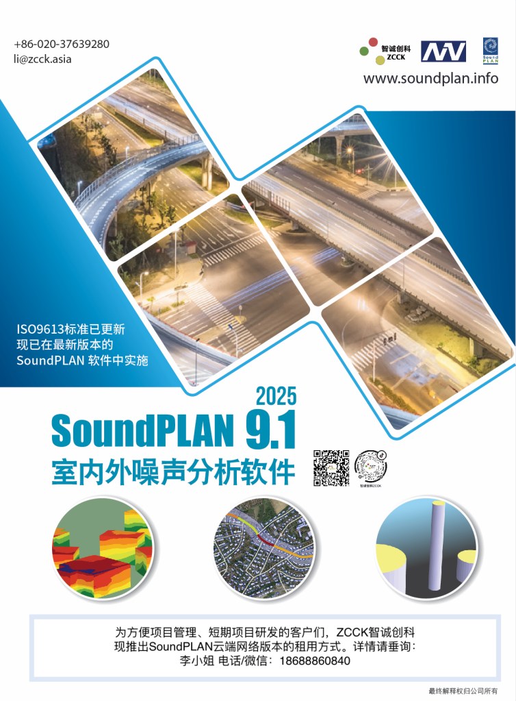 噪声 推出SoundPLAN9.1云端网络版本 作者 zzzcck on 2025-08-15 为更好地为项目管理、短期项目研发服务,ZCCK现推出SoundPLAN云端网络版本(可租用)。请联系:李小姐 电话/微信:18688860840 分享到: 点击以分享到 X(在新窗口中打开) X 点击分享到 Facebook (在新窗口中打开) Facebook 赞 正在加载……
